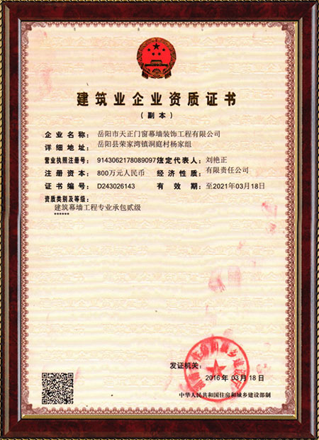 歡迎訪問岳陽市天正門窗幕墻裝飾工程有限公司!